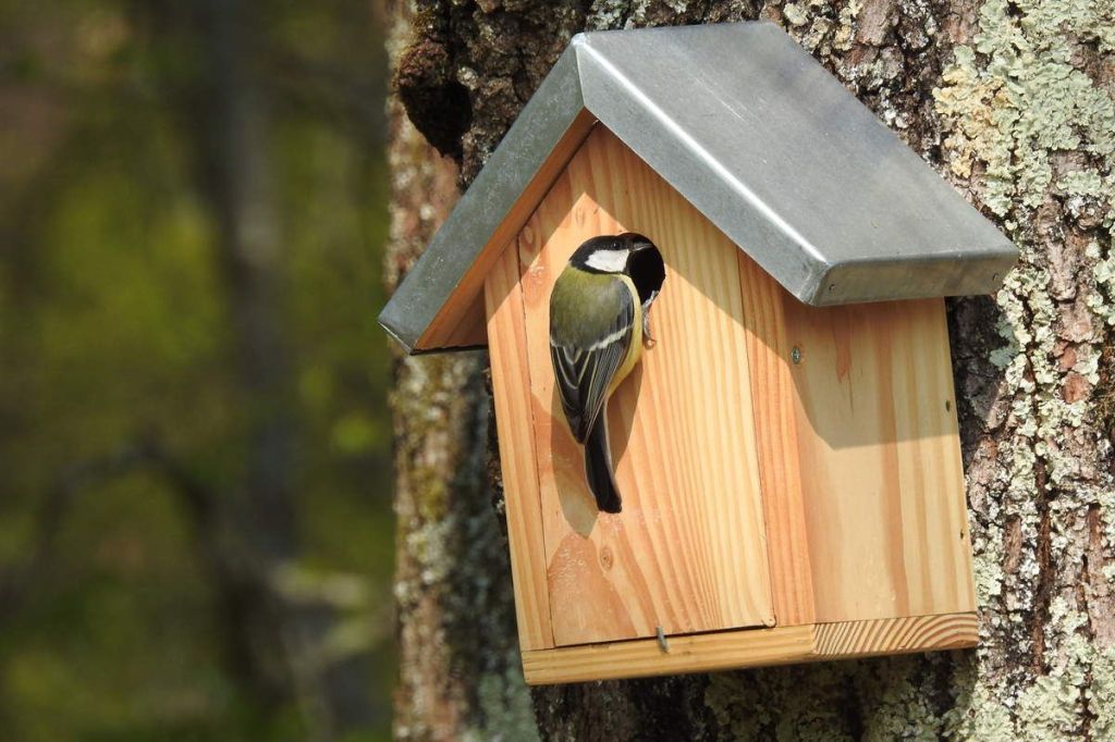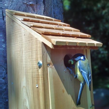 Si vous choisissez de le construire vous-même, utilisez un bois résistant à l’humidité (chêne, robinier faux acacia, châtaignier ou contreplaqué CTBX (résistant à l’extérieur) …) et surtout laissez-le brut. Plus le nichoir a l’air naturel, plus les oiseaux se sentiront à leur aise et dans leur élément. Ils pourront se servir de la rugosité du bois pour s’accrocher et sortir du nichoir. Ne pas le peindre, les couleurs fluo n’existent pas dans la nature, les peintures apportent une odeur également et votre nichoir risque de ne pas être utilisé. Si vous avez une âme d’artiste, vous pouvez le décorer avec de l’écorce. Afin d’éviter qu’il ne s’abîme trop vite vous pouvez fixer une plaque étanche sur le toit (zinc, chute de lino…).