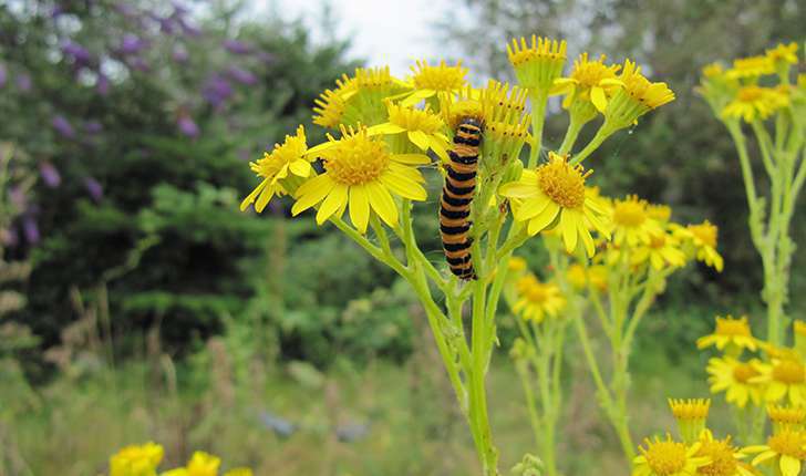 Ainsi cette fleur jaune est le Séneçon de Jacob, une plante toxique pour les chevaux et les bovins. La chenille qui l’habite est celle de l’écaille du séneçon dite aussi goutte de sang. C’est un papillon nocturne…