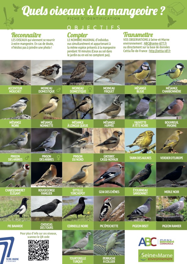 Vous pouvez participer à cet atlas en notant les espèces présentes dans votre jardin. Pour cela, nous vous proposons de faire un suivi autour de mangeoires des oiseaux.