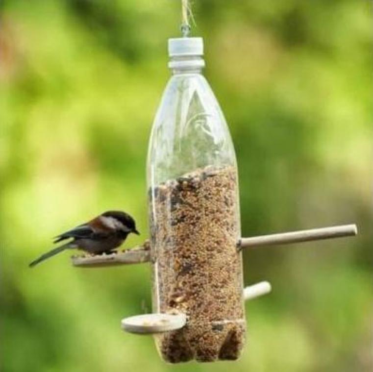 Quelle mangeoire ? La meilleure mangeoire est celle fabriquée avec des matériaux de récupération : une bouteille d’eau à bricoler avec les enfants (nombreux modèles sur internet) ou en construire une : une planche d’environ la taille d’une feuille A4, quelques baguettes pour les rebords et un pied ou du fil pour le suspendre et un petit toit. Pour les moins bricoleurs, des mangeoires toutes faites peuvent être achetées.