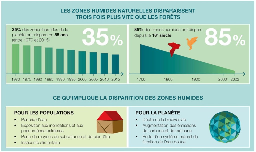 Malgré tous ces intérêts 70% des zones humides ont disparu au siècle passé dont la moitié depuis 1970…